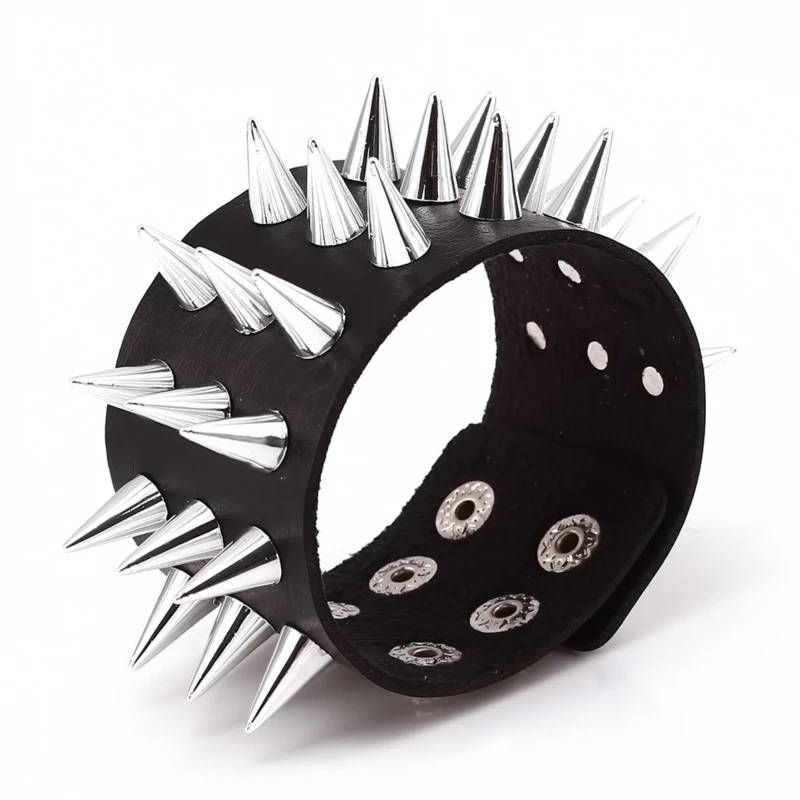 Name: Único de tres fila puntiagudo hacen picos remache de cuero ancho Punk Rock gótico Unisex pulsera de hombre de la joyería